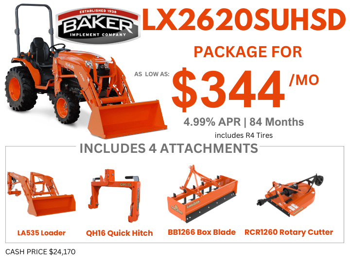 LX2620SUHSD TRACTOR PACKAGE INCLUDES: